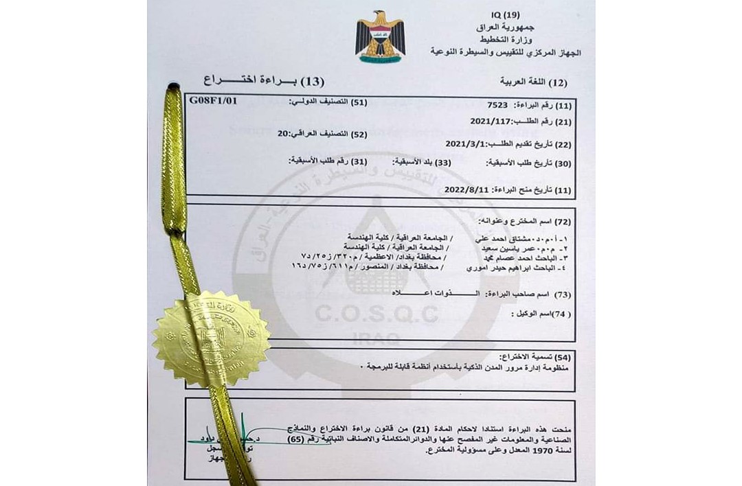 براءة اختراع في الجامعة العراقية عن منظومة إدارة مرور المدن الذكية باستخدام أنظمة قابلة للبرمجة