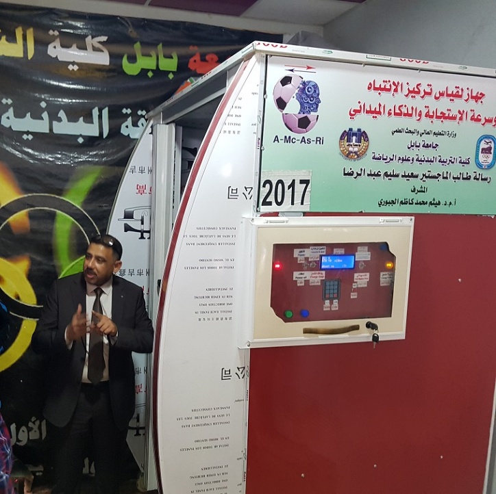 حصل التدريسي في كلية التربية البدنية وعلوم الرياضة بجامعة بابل، هيثم محمد الجبوري، بالاشتراك مع الطالب سعيد سليم عبد الرضا على براءة اختراع عن تصنيع جهاز لقياس القدرات العقلية للاعبي كرة القدم الصالات.