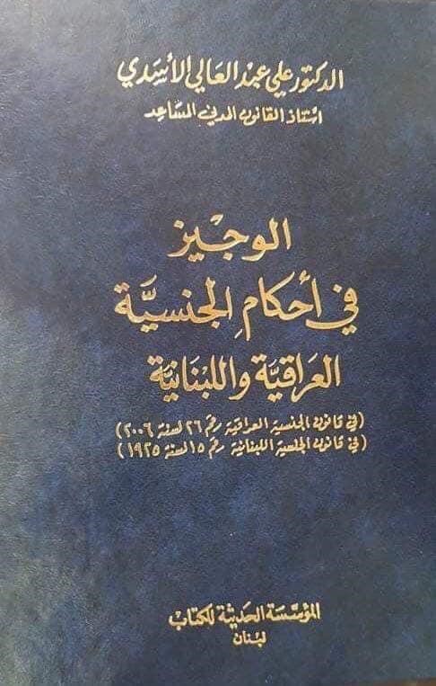 صدر للتدريسي في كلية القانون بجامعة البصرة الدكتور علي عبد العالي الاسدي كتاب بعنوان (الوجيز في احكام الجنسية العراقية واللبنانية).