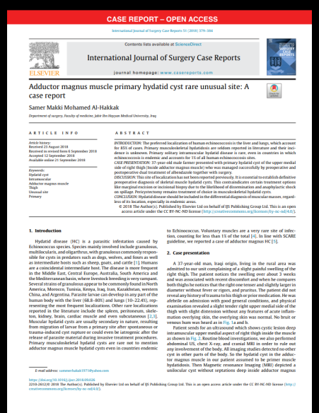 وتناول البحث وجود أكياس الكبد المائية في عضلات الفخذ الأيمن دون  وجودها في مكان آخر من الجسم.