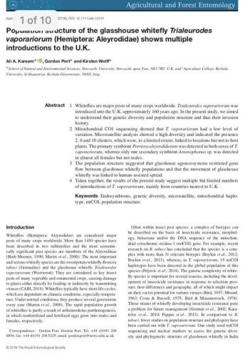 وناقش البحث الاختلافات في النمط الجيني لمجتمع آفة الذبابة البيضاء التي تصيب المحاصيل الزراعية وتتسبب بخسائر فادحة في القطاع الزراعي، ودراسة النمط الجيني والتصنيف الجزيئي لمجتمع الذبابة البيضاء .