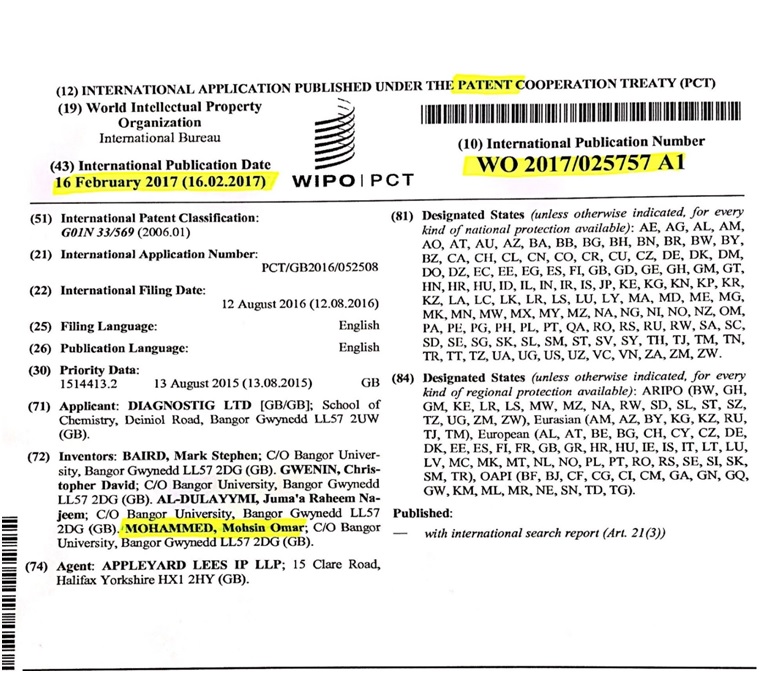 حصل التدريسي في كلية العلوم بجامعة كركوك الدكتور محسن عمر محمد، على براءة اختراع عن تحضير (اختلاق) مركبات سكرية - دهنية مماثلة لاجزاء من جدار خلية البكتريا المسببة لمرض السل، من المملكة المتحدة البريطانية.