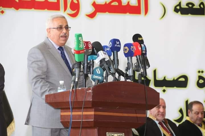 وقال ممثل وزارة التعليم العالي والبحث العلمي الدكتور محسن الفريجي في كلمة خلال الحفل، إن جامعة الانبار كان لها دور في تحدي الإرهاب الذي طال المحافظة، مؤكدا أن ردها كان كبيرا في استمرار الدراسة لكل مراحلها في مواقع بديلة والانتقال إلى موقعها في محافظة الانبار بعد تحريرها من عصابات داعش مباشرة.