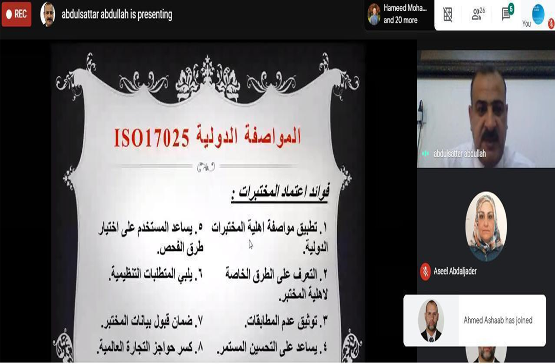جامعة الانبار تقيم ورشة عمل الكترونية عن اعتمادية المختبرات حسب المواصفات الدولية