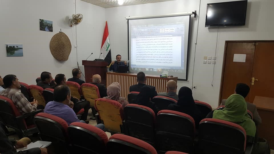 نظم مركز أبحاث النخيل في جامعة البصرة محاضرة علمية عن العوامل المؤثرة في النمو والتطور في زراعة الأنسجة، بمشاركة باحثين وتدريسيين.