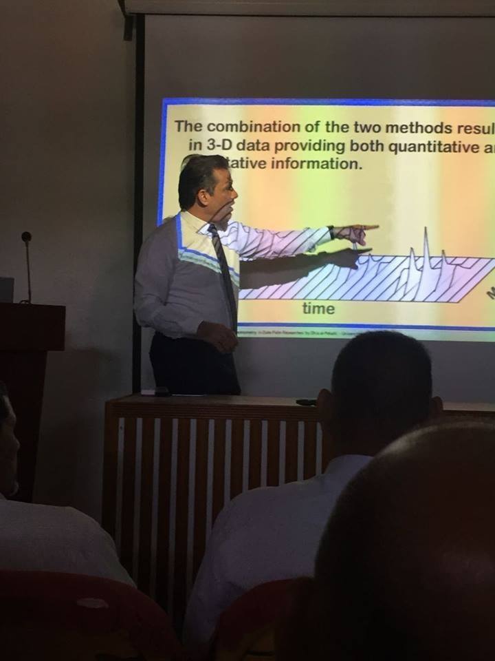 وتضمنت المحاضرة عرض مجموعة من تطبيقات الجهاز في مجال أبحاث التمور الذي يستعمل لتقدير الأحماض الدهنية في نوى التمر إضافة إلى التعرف على مكونات التمور والمركبات الفعالة من خلال استعمال GCMS.