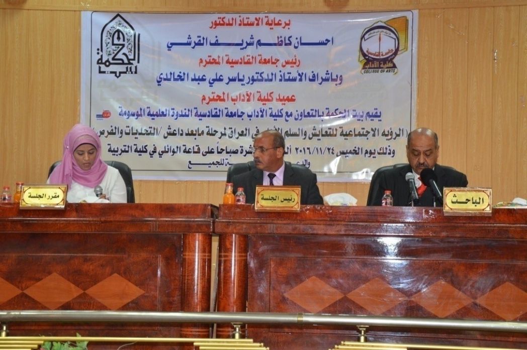 نظمت كلية الآداب في جامعة القادسية ندوة عن الرؤية الاجتماعية للتعايش والسلم الأهلي في العراق لمرحلة ما بعد داعش، بمشاركة باحثي الكلية وتدريسييها.