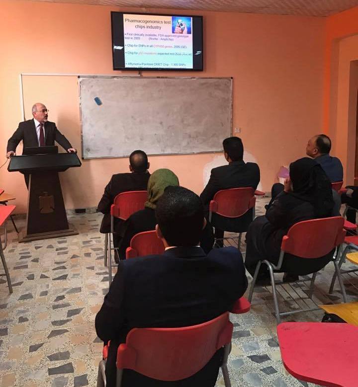وهدفت المحاضرة التي ألقاها الدكتور محمد طالب التميمي, التعريف بالطرق الوراثية الحديثة في تشخيص الأمراض المستعصية, وتحديد الجرعة الدوائية لها بدقة, وكذلك استبعاد التأثيرات السمية للدواء عن المريض.