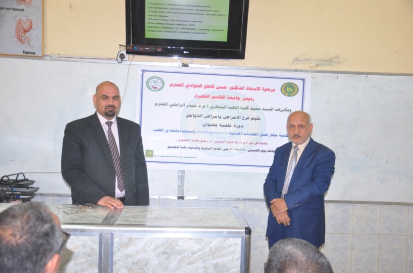 نظمت كلية الطب البيطري في جامعة القاسم الخضراء, دورة تدريبية عن استعمالات وتقنيات جهاز الفصل المناعي في المجالات الطبية, بمشاركة باحثين ومختصين.
