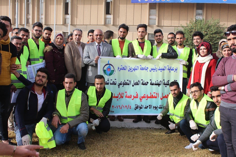 نظمت رئاسة جامعة النهرين بمجمعيها الشمالي والجنوبي حملة للعمل التطوعي، بمشاركة طلبة الجامعة وأساتذتها ومنتسبيها.