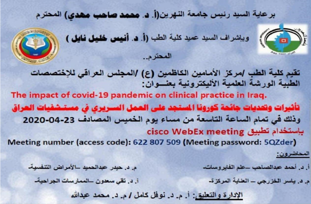نظم المعهد العالي لتشخيص العقم والتقنيات المساعدة على الانجاب في جامعة النهرين، ورشة عمل عن كيفية تقديم عرض فعال في البرامج الالكترونية والمنصات التعليمية.