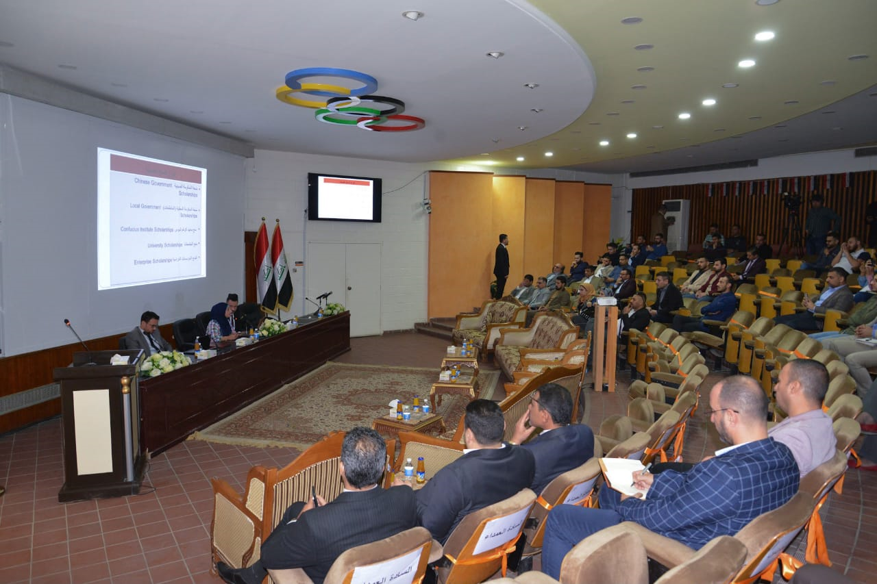 نظمت كلية التربية البدنية وعلوم الرياضة في جامعة بغداد ندوة عن تحفيز الطلبة والمنتسبين وتشجيعهم لاكمال دراستهم الاكاديمية في الجامعات الصينية.
