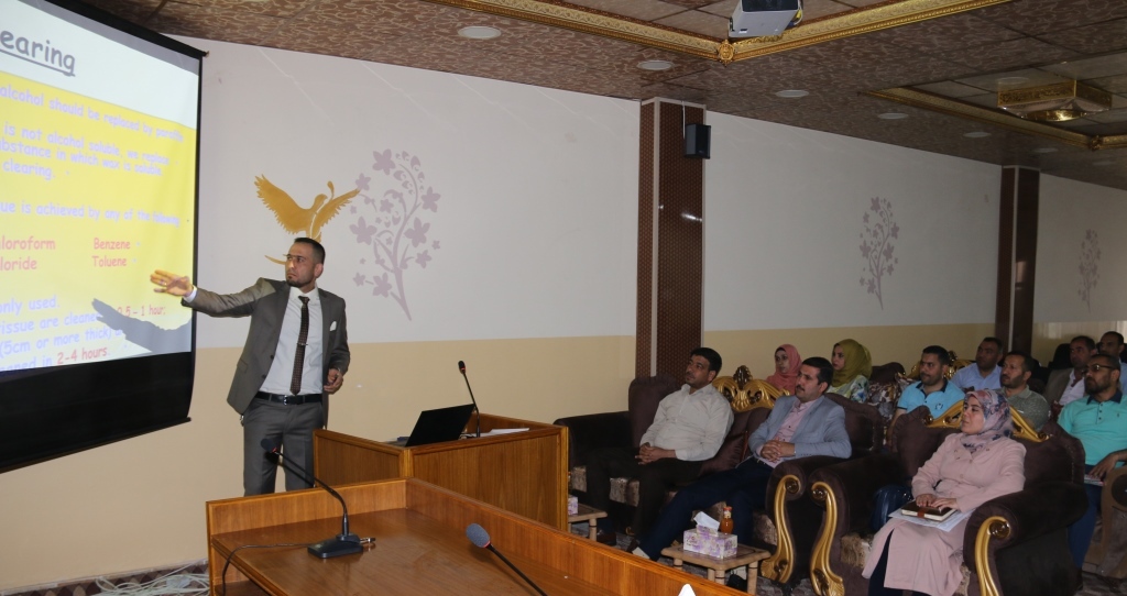 وتضمنت الندوة، محاضرة قدمها الدكتور حسان هادي البياتي عن انواع المواد الكيميائية الفاعلة في حفظ العينات والانسجة والمقاطع الجراحية المستخدمة في التجارب العملية التي يعدها طلبة الدراسات والباحثون.