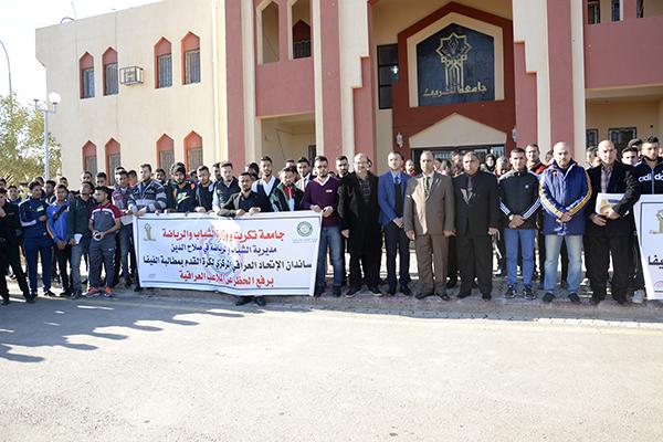 جامعة تكريت تنظم وقفة تضامنية لمطالبة الفيفا برفع الحظر عن الملاعب العراقية