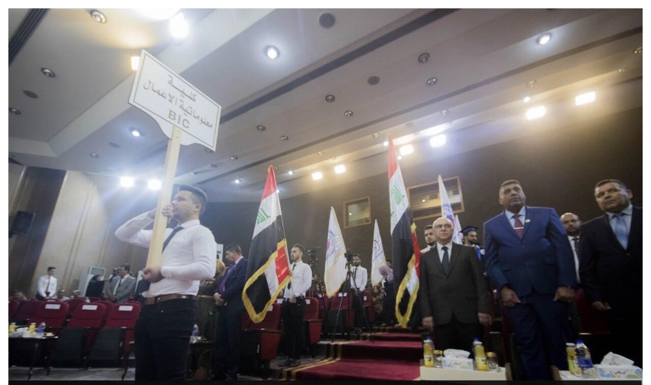 احتفلت جامعة تكنولوجيا المعلومات والاتصالات بتخرج الدفعة الأولى لطلبتها دورة النصر والتنمية. وقال وكيل الوزارة لشؤون البحث العلمي الدكتور فؤاد قاسم محمد خلال حضوره حفل التخرج، إن تخرج الدفعة الأولى من طلبة الجامعة يأتي في وقت وظرف متميز لحاجة البلد الى جهودهم للمساهمة في بناء المجتمع وتوفير الخدمات الاستشارية والتقنية لقطاعات الدولة المختلفة، مبينا أن الجامعة تحرص على نقل الخبرة المهنية والعلمية إلى الخريجين وتوفير احتياجات سوق العمل خصوصا في مجال تقنية المعلومات والاتصالات. وأشاد وكيل الوزارة بالنتاج العلمي المتميز للباحثين في جامعة تكنولوجيا المعلومات والاتصالات، خصوصا في مشروع الحوكمة الالكترونية والبوابة الالكترونية لقبول الطلبة مركزياً في الجامعات العراقية الحكومية والأهلية . من جانبه قال رئيس جامعة تكنولوجيا المعلومات والاتصالات الدكتور عباس محسن البكري، إن الهدف الرئيسي الذي سعت الى تحقيقه الجامعة هو ان يكون النتاج العلمي للطلبة الخريجين ملبيا لحاجات المجتمع. وتخلل حفل التخرج ترديد قسم التخرج، وتوزيع الهدايا التقديرية الى الطلبة الاوائل.