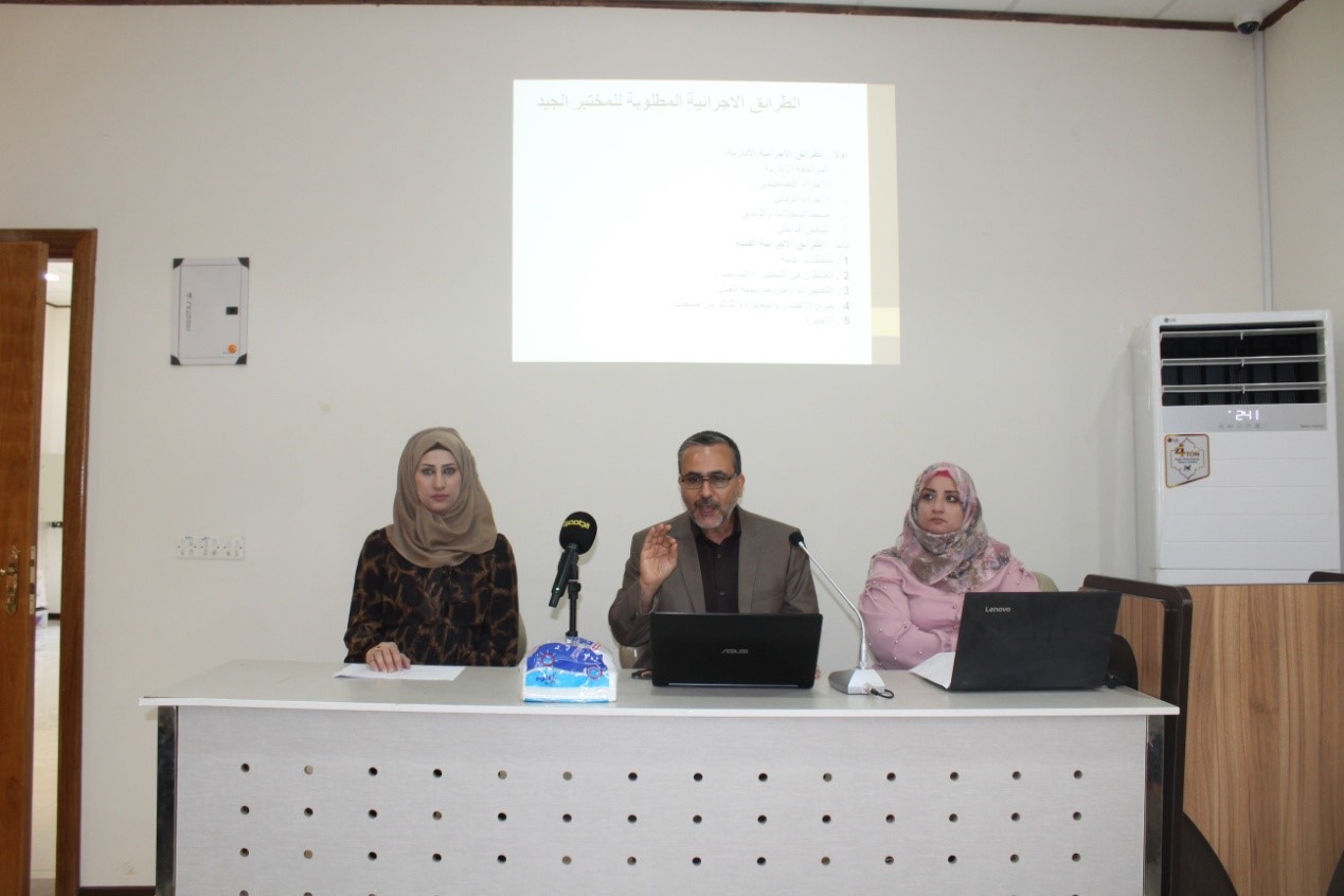 وتطرقت الورشة إلى تنظيم عمل السجلات الخاصة بالطرائق الإجرائية، ومناقشة معايير السلامة الصحية في المختبرات العلمية .