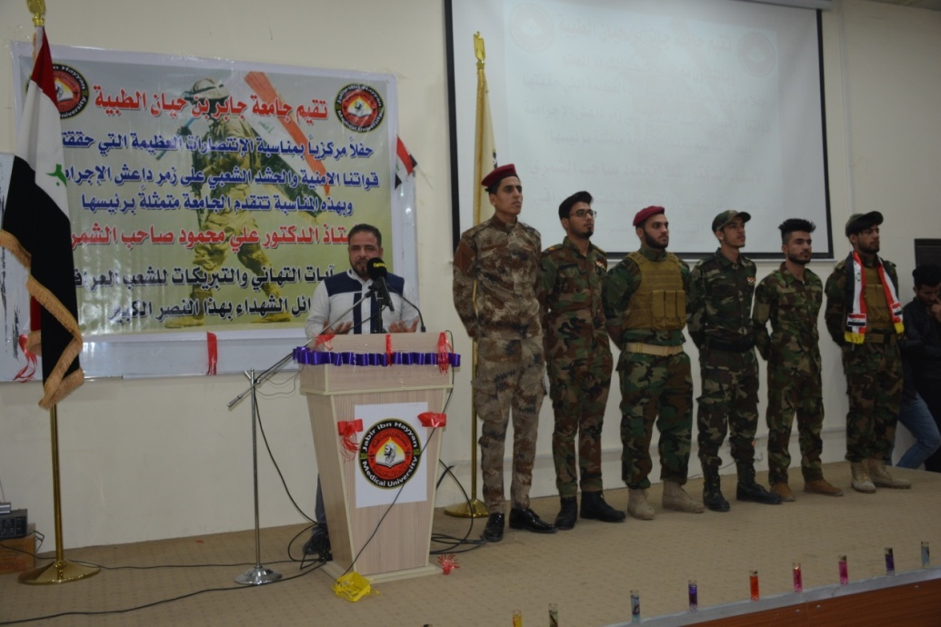 نظمت جامعة جابر بن حيان الطبية احتفالاً مركزياً بمناسبة إعلان النصر النهائي على عصابات داعش الإرهابية.