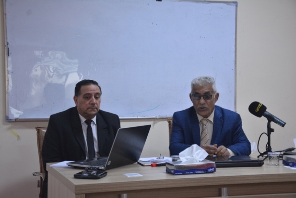 وناقشت المحور الثاني لمدير قسم الاعلام والعلاقات العامة التدريسي علي عبد الحسين طريقة انتاج البيانات والوثائق الكترونيا وضرورة الاهتمام بالبناء الفني للخبر من خلال كتابة العنوان والمقدمة وجسم الخبر وخلفيته .