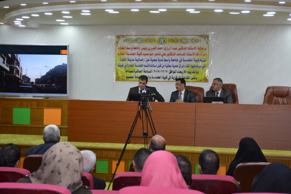 نظمت كلية الهندسة في جامعة واسط، ندوة علمية عن الجوانب التخطيطية والتصميمية في مدينة الكوت، بمشاركة باحثين ومختصين من دوائر الدولة .