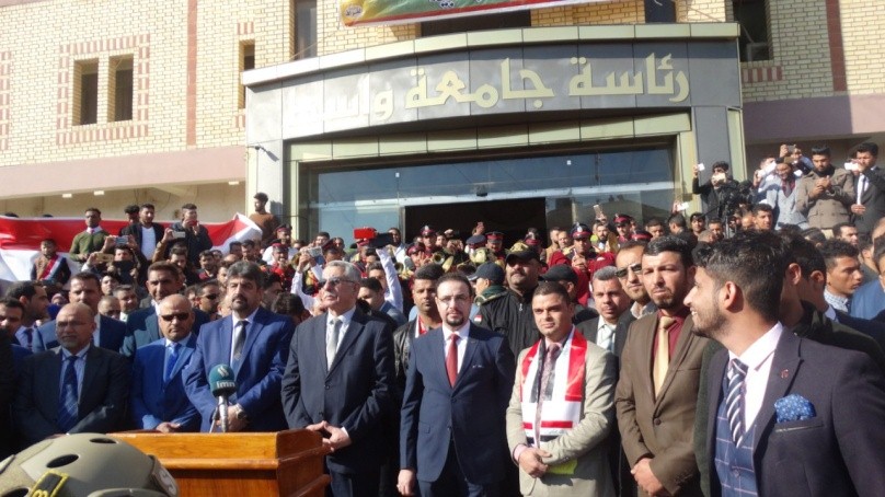 نظمت جامعة واسط احتفالا كبيرا بمناسبة اعلان النصر الكبير على داعش الإرهابية بمشاركة اساتذة الجامعة وموظفيها وطلبتها.
