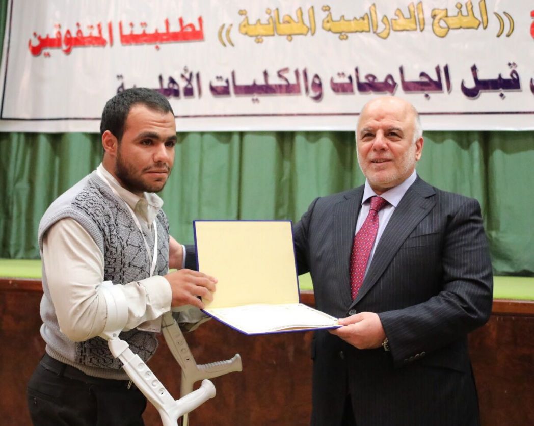 أقامت وزارة التعليم العالي والبحث العلمي حفلا لتوزيع خمسمئة منحة دراسية مجانية في الاختصاصات الطبية على الطلبة المتفوقين بحضور ورعاية رئيس مجلس الوزراء الدكتور حيدر العبادي