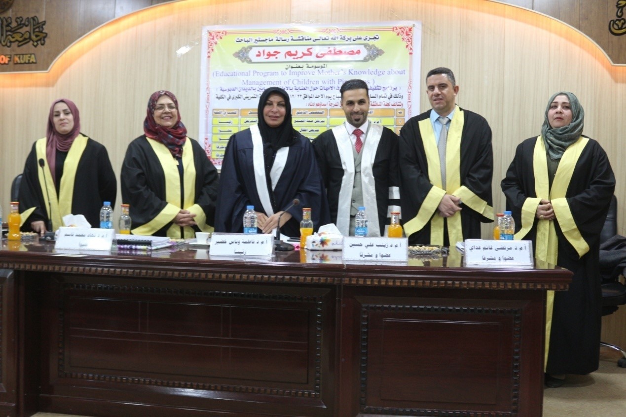 ناقشت كلية التمريض بجامعة الكوفة رسالة الماجستير بعنوان برنامج تثقيفي لتحسين معارف الأمهات حول العناية بالأطفال المصابين بالديدان الدبوسية.