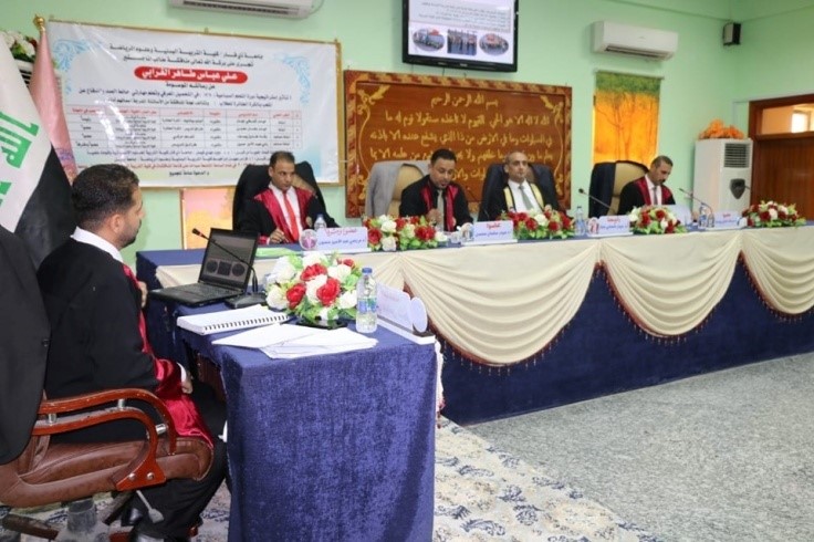 وناقشت الرسالة التي قدمها الطالب مهند جابر عبد الامير العبودي ،اعتماد المنهجِ الوصفيِّ التحليليِّ وعرض الإشاراتِ والدلالاتِ اللونيةَ المتوفرةَ في النصِّ..