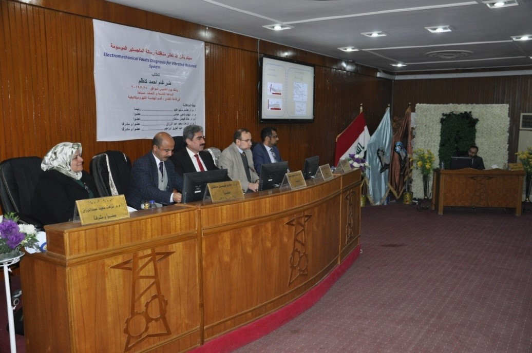 ناقشت رسالة ماجستير في قسم الهندسة الكهروميكانيكية بالجامعة التكنولوجية، نمذجة نظام كهروميكانيكي معلق مهتز باستعمال الذكاء الاصطناعي