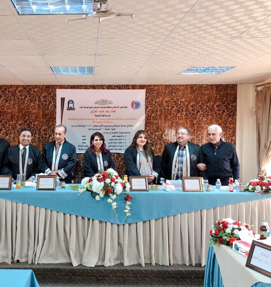بحثت رسالة ماجستير في قسم هندسة المواد في الجامعة التكنولوجية تصميم عمود فقاعي لفك بلمرة النفايات البلاستيكية باستخدام مواد نانونية مساعدة.