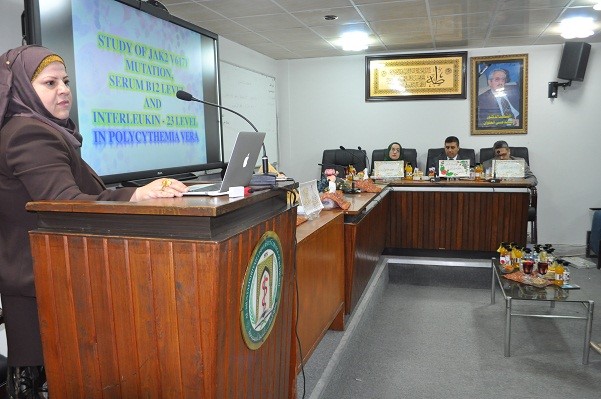 ناقشت رسالة ماجستير في كلية الطب بالجامعة المستنصرية، مرض إزدياد الخلايا الحمر الأساسي، للطالبة منال علي عبد الصاحب.