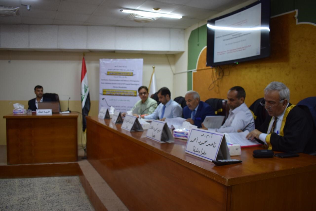 وتهدف الرسالة التي قدمها الطالب خالد حمادي إبراهيم الى تخليق افضل غشاء من الفايبر من ( السيليلوز اسيتات) والبولي فانيل بايرولايدونا باستخدام الاكتروسبتنك وتحضير الكيتوبروفين مع الفايبر ودراسة خصائص الفايبر باستخدام اجهزة القياس(FT – IR , H – NMR , 13C – NMR ) ودراسة التركيب السطحي باستخدام SEM , TEM .