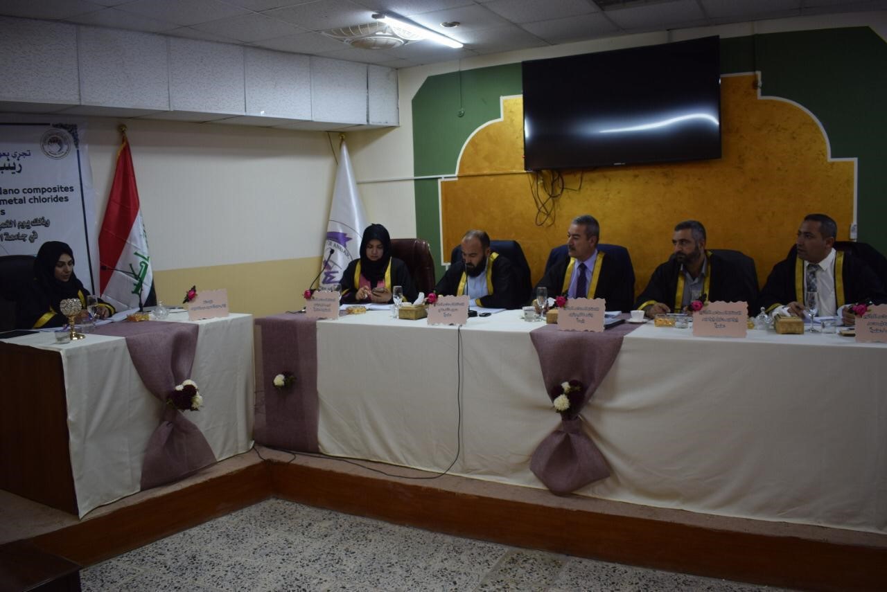 وتناولت الرسالة التي قدمتها الطالبة زينب عبد الحميد عبد اللطيف تحضير وتشخيص مركبات بوليمرية نانوية من المثيل اكريليت وبعض كلوريدات الفلزات الانتقالية ودراسة تطبيقاتها .