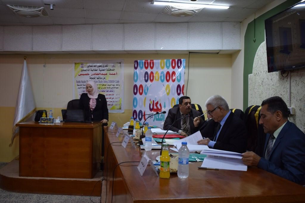 ناقشت رسالة ماجستير في كلية العلوم بجامعة الانبار مجموعة من نظائر الكالسيوم الغريبة ( Ca -52,54,56,58) .