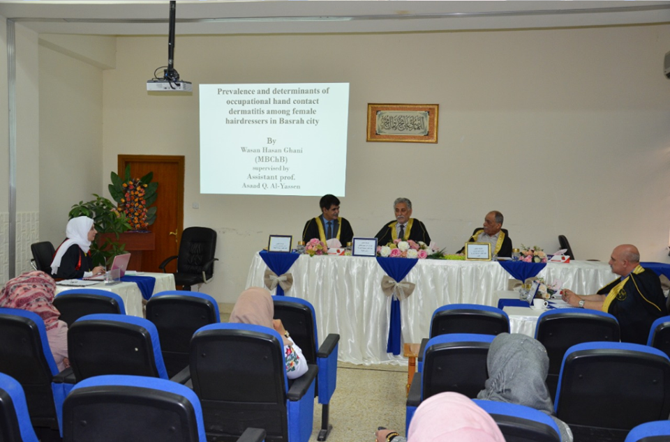 ناقشت رسالة ماجستير في كلية العلوم بجامعة البصرة تحضير ودراسة خصائص حبيبات الفضة النانوية وتطبيقها كعامل مضاد للبكتريا.