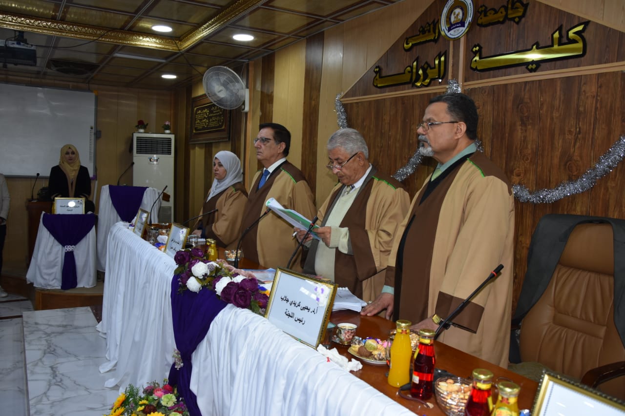 ناقشت رسالة ماجستير في كلية الزراعة بجامعة المثنى، تأثير مواعيد الزراعة المبكرة في نمو وحاصل العلف للأصناف من الشوفان .