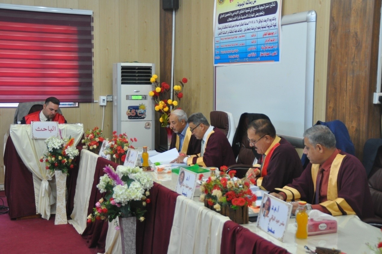 ناقشت رسالة ماجستير في جامعة بابل تأثير إستراتيجية سكامبر في تنمية التفكير الإبداعي والتحصيل المعرفي وتعلم بعض المهارات الأساسية بكرة القدم للطلاب.