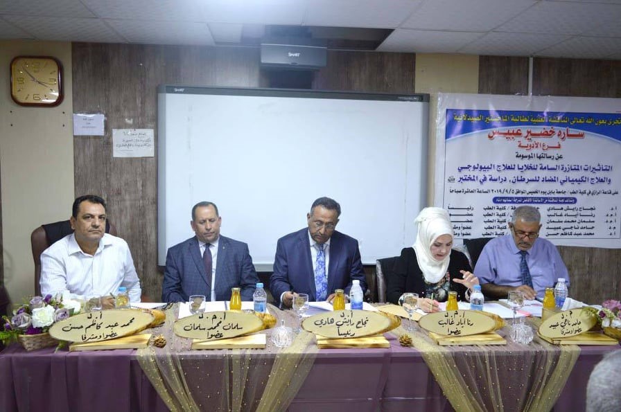 ناقشت رسالة ماجستير في كلية الطب بجامعة بابل، التأثيرات المتآزرة السامة للخلايا للعلاج البيولوجي والكيميائي المضاد للسرطان، دراسة في المختبر.