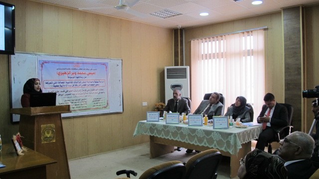ناقشت رسالة ماجستير في كلية العلوم بجامعة بابل، بعض المركبات الثانوية الفعالة التي تفرزها بعض الطحالب الخضر المزرقة في بيئات مائية محلية، للباحثة ميس محمد وبر الزهيري.