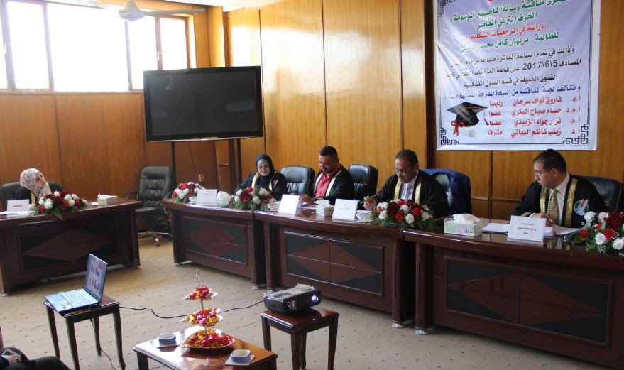 ناقشت رسالة ماجستير في كلية الفنون الجميلة في جامعة بغداد دراسة المرجعيات الشكلية للخزف التركي المعاصر, للطالبة بريهان كامل محمد.