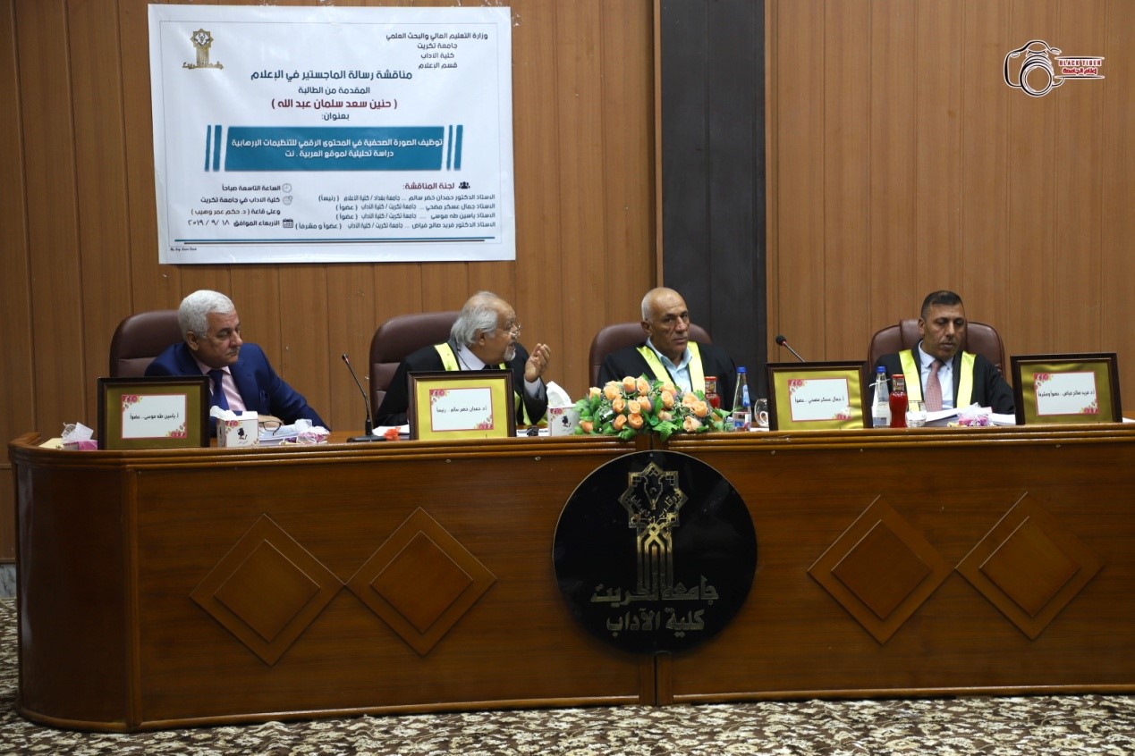 ناقشت رسالة الماجستير في كلية الآداب بجامعة تكريت, توظيف الصورة الصحفية في المحتوى الرقمي للتنظيمات الإرهابية.