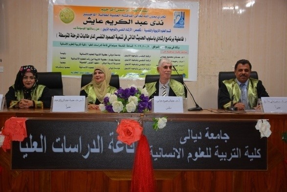 بحثت رسالة الماجستير في كلية التربية للعلوم الانسانية بجامعة ديالى ، فاعلية برنامج ارشادي بأسلوب الحديث الذاتي في تنمية الصمود النفسي لدى طالبات المرحلة المتوسطة.