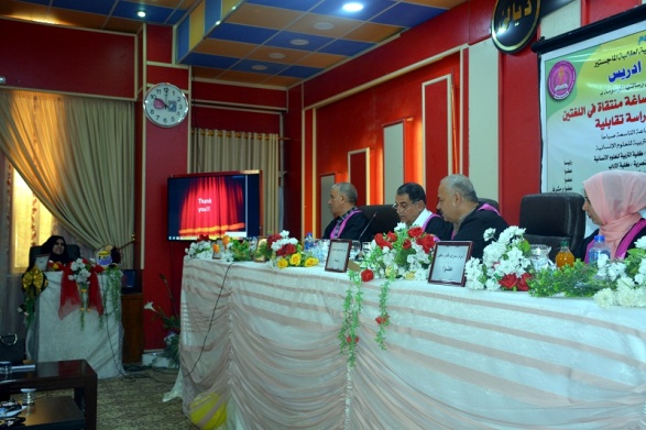 ناقشت رسالة ماجستير في كلية التربية للعلوم الإنسانية بجامعة ديالى دراسة تعابير التحية والشكر في اللغتين العربية والإنكليزية – دراسة تقابلية, للطالبة فاطمة عبد الغني ادريس .