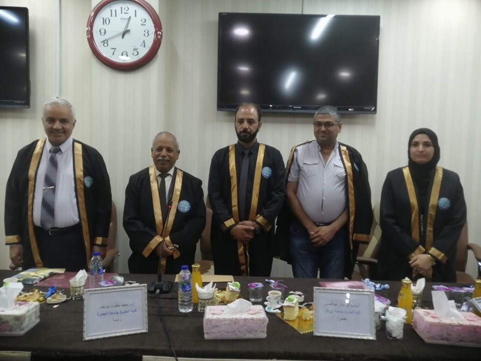 ناقشت رسالة ماجستير في كلية العلوم بجامعة ذي قار، تخليق وتشخيص ودراسة النشاط البايولوجي لبعض السيليناديازول الجديدة المشتقة من 3 , 3-داي امينواينزيدين.
