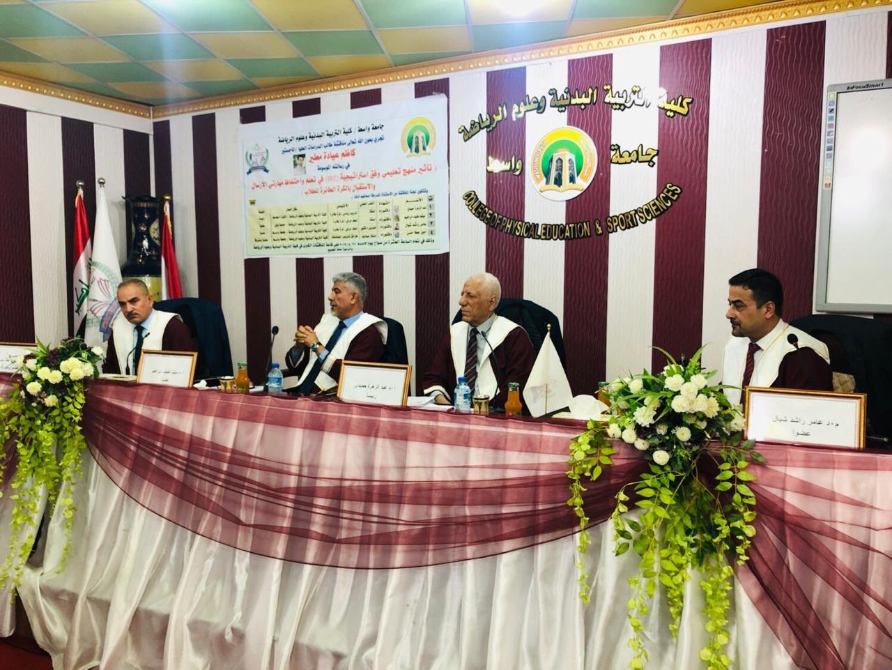 ناقشت رسالة الماجستير في كلية التربية البدنية وعلوم الرياضة بجامعة واسط , تأثير منهج تعليمي وفق استراتيجية (IRE) في تعليم واحتفاظ مهارات الإرسال والاستقبال بالكرة الطائرة للطلاب.