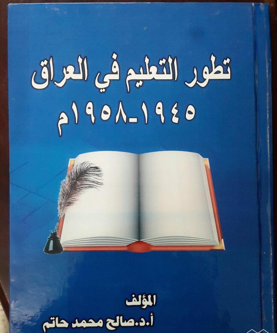 صدر للتدريسي في كلية التربية جامعة ميسان الأستاذ الدكتور صالح محمد حاتم, كتاب عن تطور التعلم في العراق 1958-1945 .