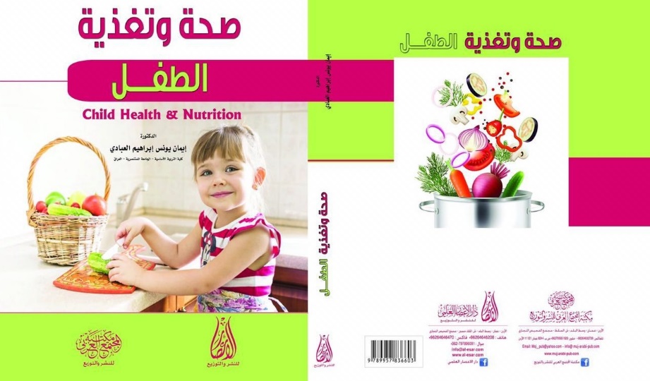 صدر للتدريسية في كلية التربية الأساسية بالجامعة المستنصرية الدكتورة إيمان يونس إبراهيم العبادي، كتاب بعنوان (صحة وتغذية الطفل).