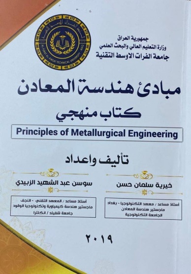 صدر للتدريسيتين في جامعة الفرات الأوسط التقنية الدكتورة سوسن عبد الشهيد الزبيدي والتدريسية بالجامعة التقنية الوسطى الدكتورة خيرية سلمان حسن كتاب منهجي عن مبادئ هندسة المعادن .