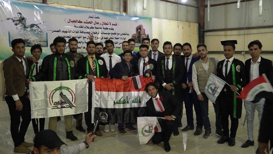 احتفل طلبة جامعة كربلاء بتخرجهم مع مقاتلي الحشد الشعبي في مدينة تكريت، لتقديم الدعم والإسناد لمجاهدي الحشد الشعبي وفاءً لتضحياتهم.