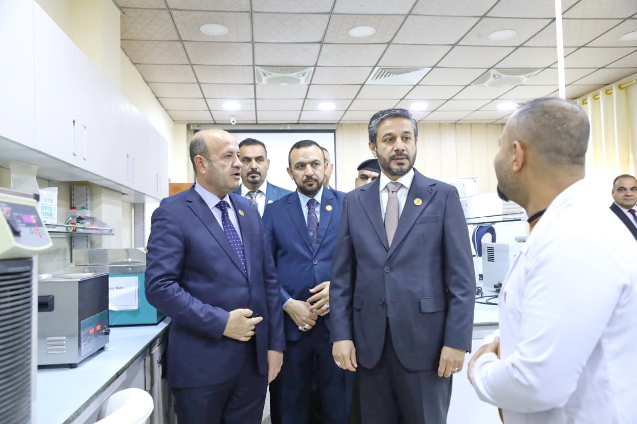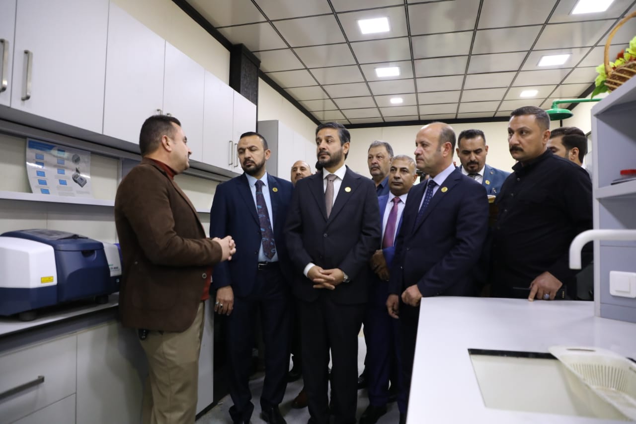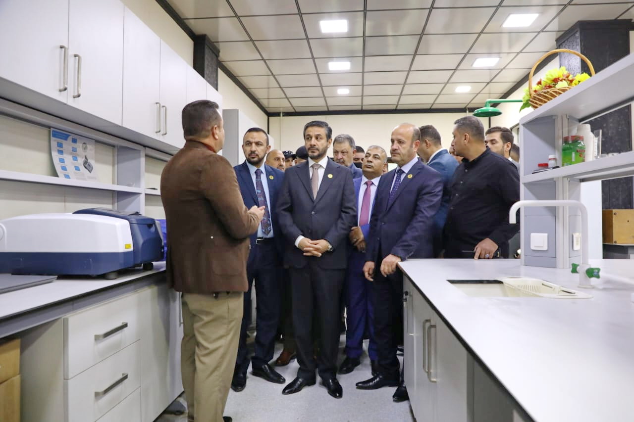 واطلع وزير التعليم بحضور السيد رئيس الجامعة الدكتور وعد محمود رؤوف وعدد من الشخصيات النيابية والأكاديمية على مختبرات فروع الكيمياء الصيدلانية والأدوية والسموم والعلوم المختبرية والعقاقير والصيدلة السريرية، موجها باستكمال تطوير المختبرات التعليمية وتجهيزها بأحدث المعدات من أجل توفير بيئة تدريبية وبحثية متقدمة للباحثين وطلبة الدراسات العليا والأولية وإعداد جيل قادر على التفاعل المهني مع سوق العمل.