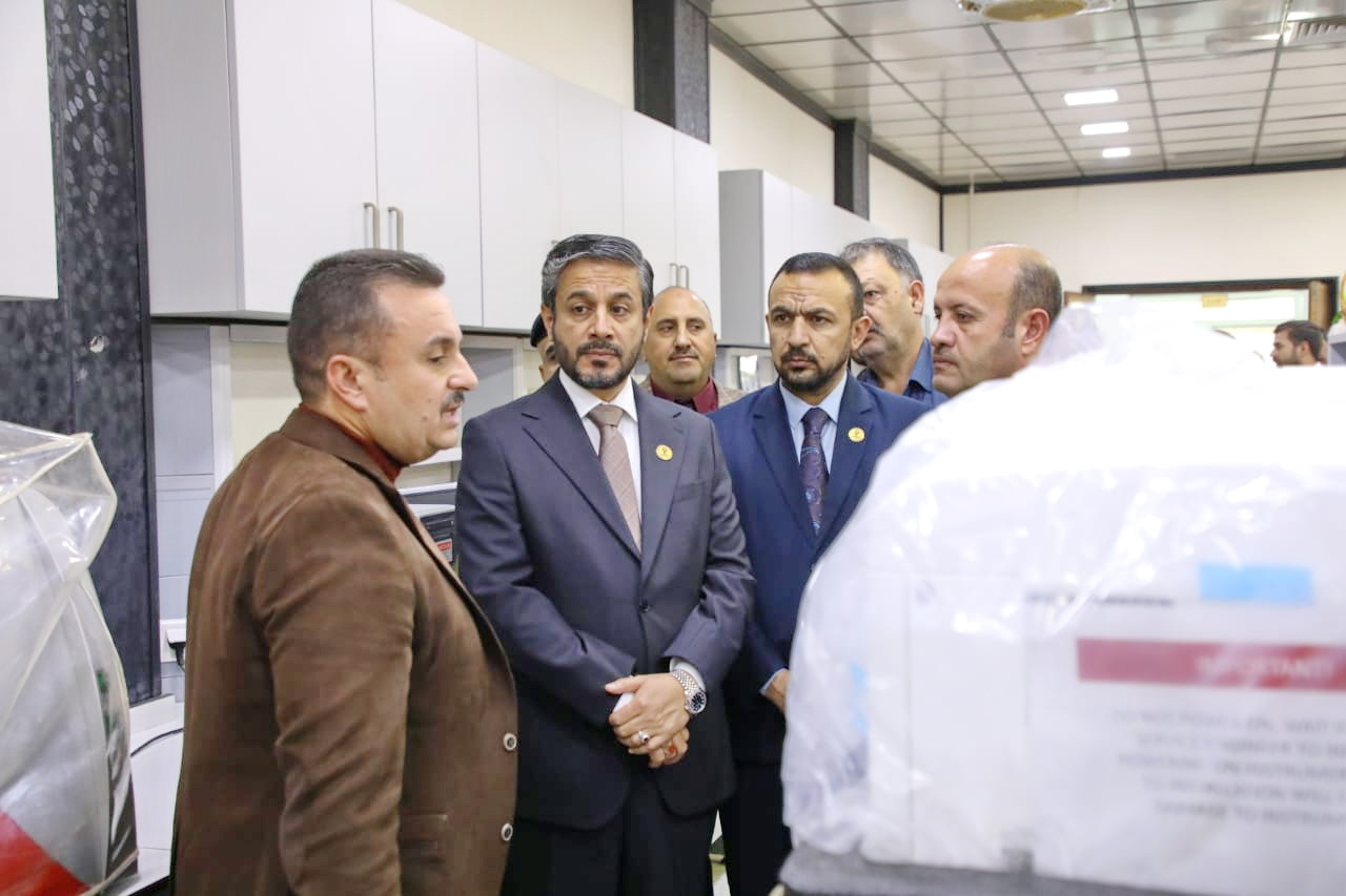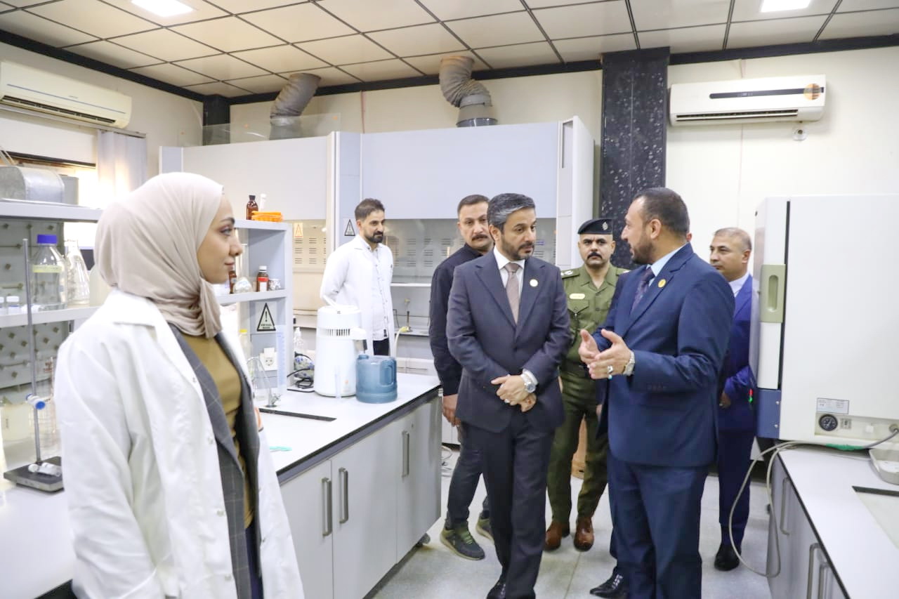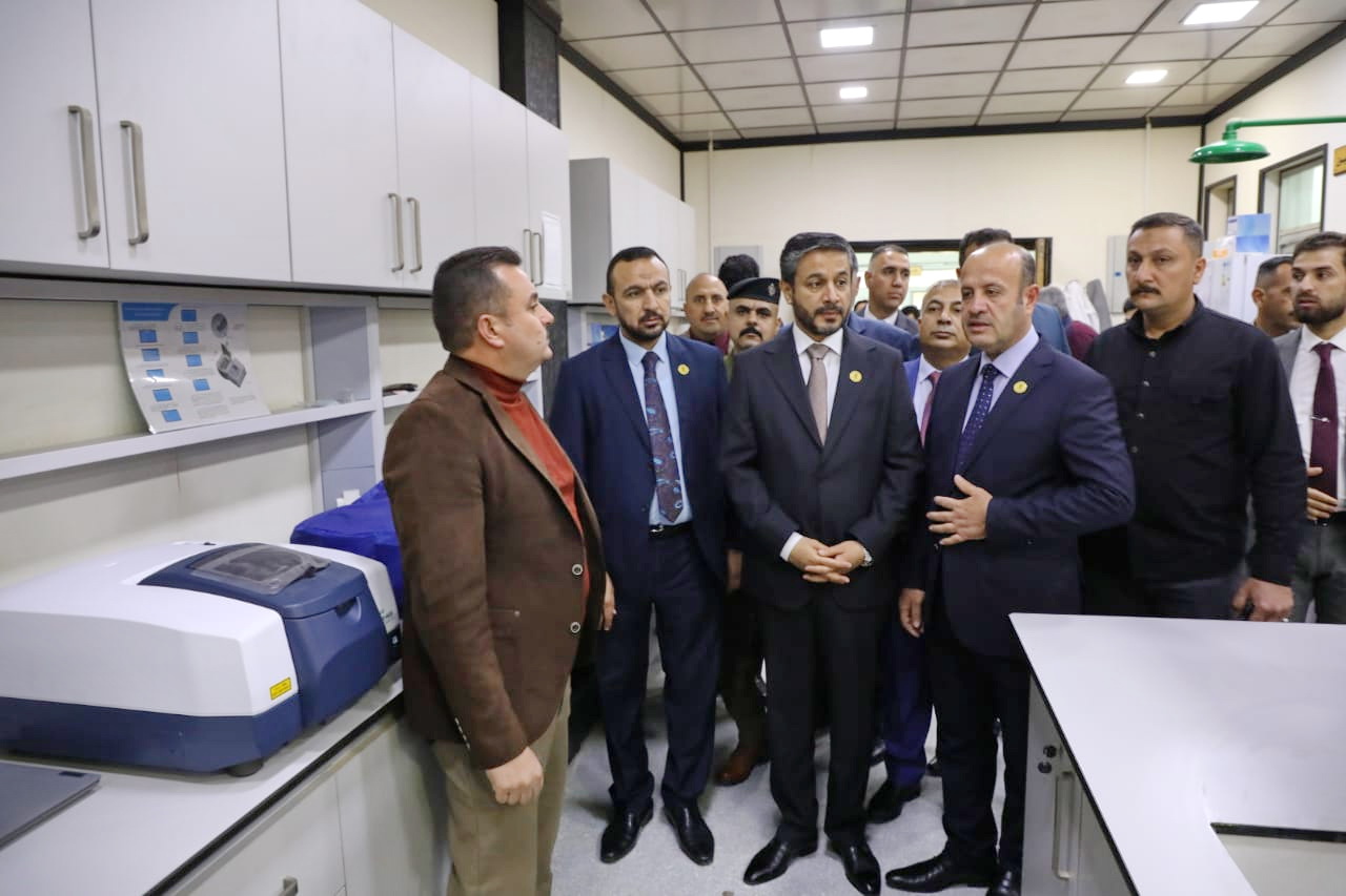 واطلع وزير التعليم بحضور السيد رئيس الجامعة الدكتور وعد محمود رؤوف وعدد من الشخصيات النيابية والأكاديمية على مختبرات فروع الكيمياء الصيدلانية والأدوية والسموم والعلوم المختبرية والعقاقير والصيدلة السريرية، موجها باستكمال تطوير المختبرات التعليمية وتجهيزها بأحدث المعدات من أجل توفير بيئة تدريبية وبحثية متقدمة للباحثين وطلبة الدراسات العليا والأولية وإعداد جيل قادر على التفاعل المهني مع سوق العمل.